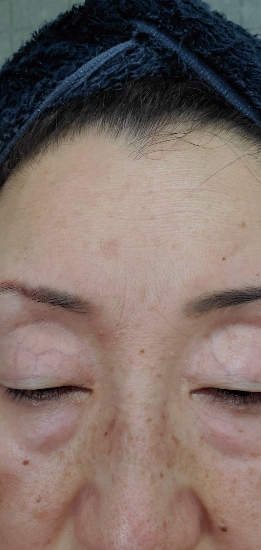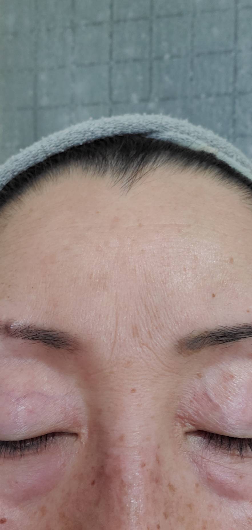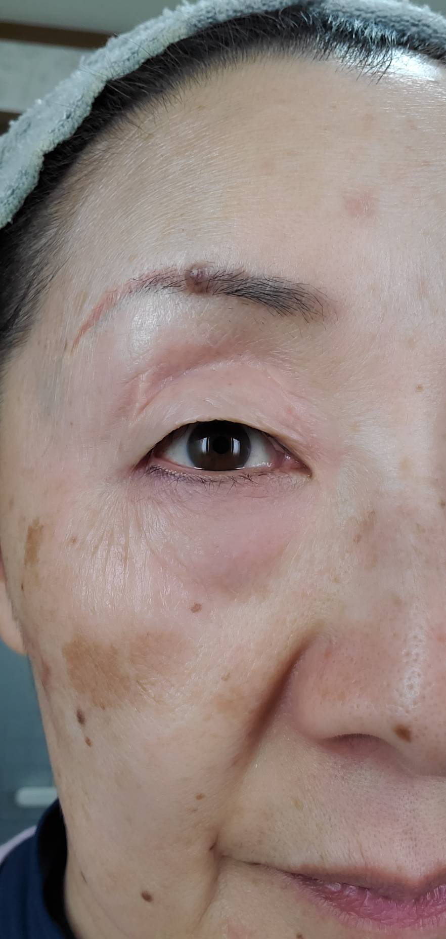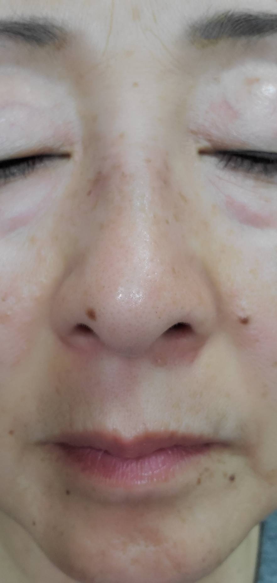 > 目の回りの赤みが少し引いたようですが、目を開けると上下の皮膚に引っ張られるようで、目が大きく開けにくく、細かいシワもたくさんですが、目尻に上下縦に出るシワが、とても目立ちます