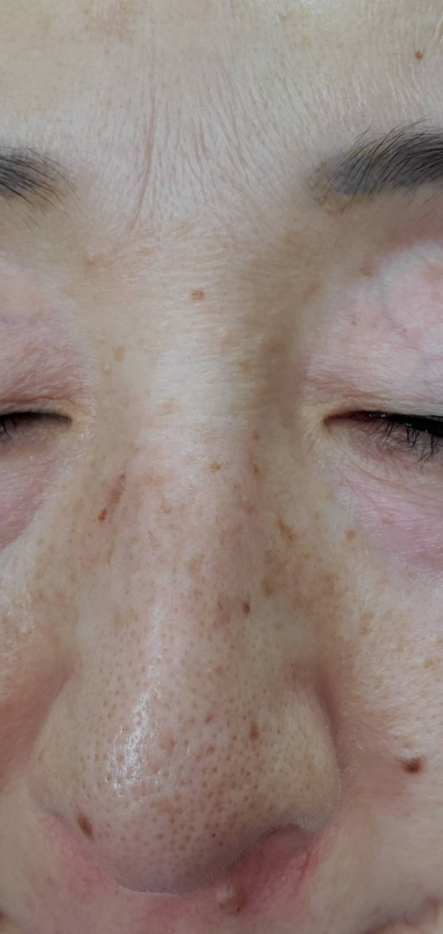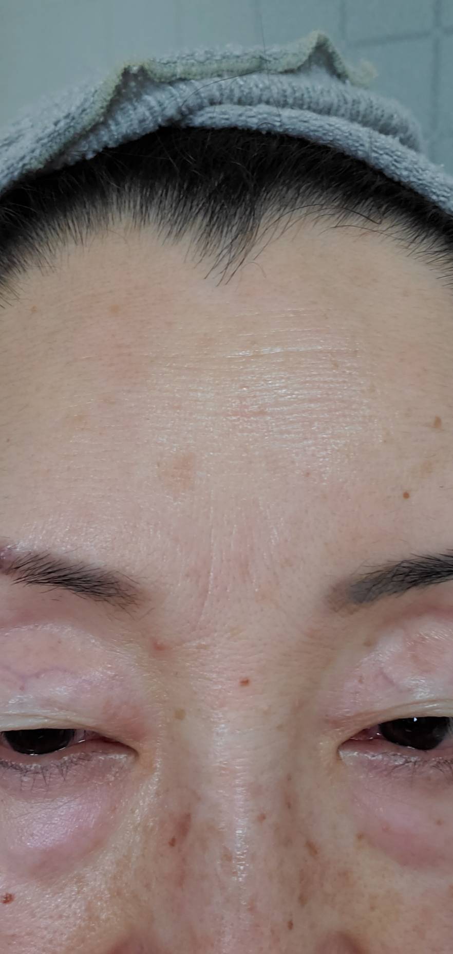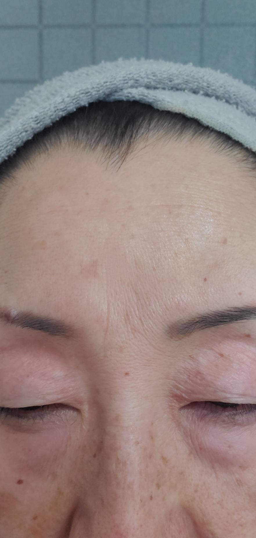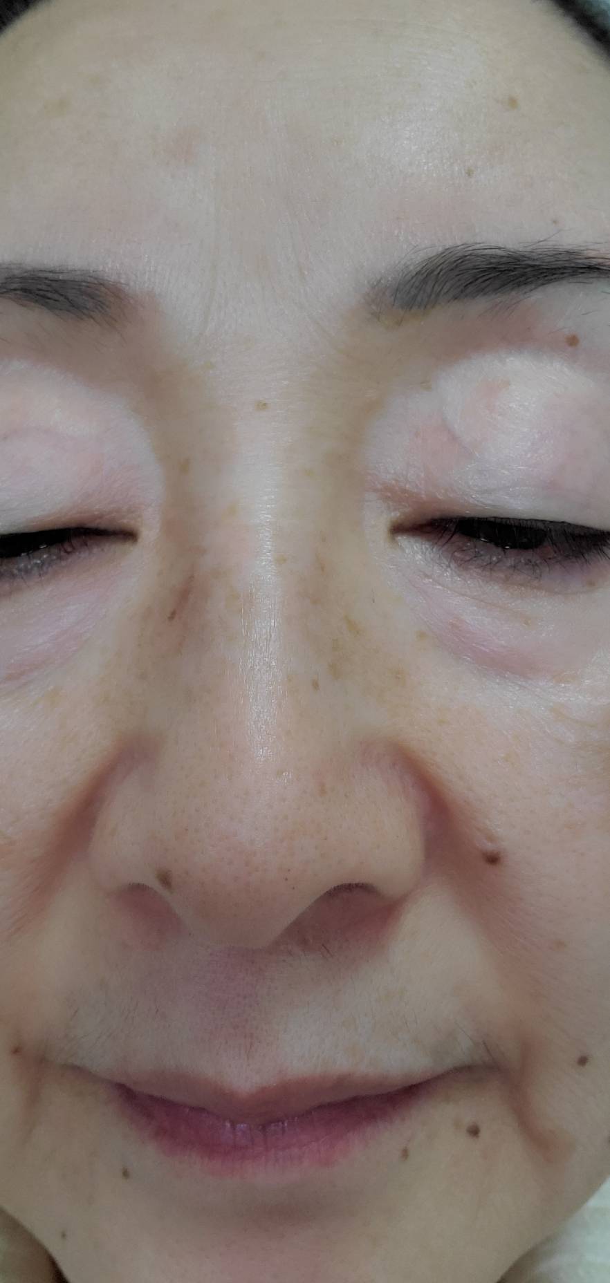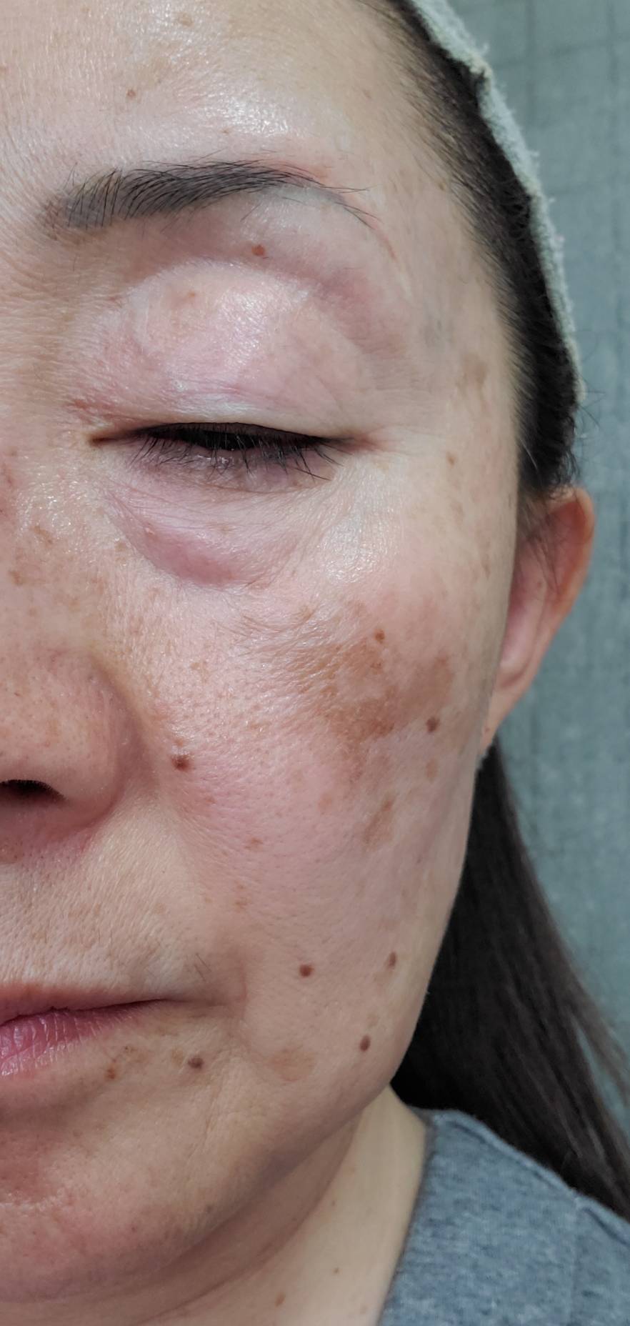 > 目の回りの赤みが少し引いたようですが、目を開けると上下の皮膚に引っ張られるようで、目が大きく開けにくく、細かいシワもたくさんですが、目尻に上下縦に出るシワが、とても目立ちます
