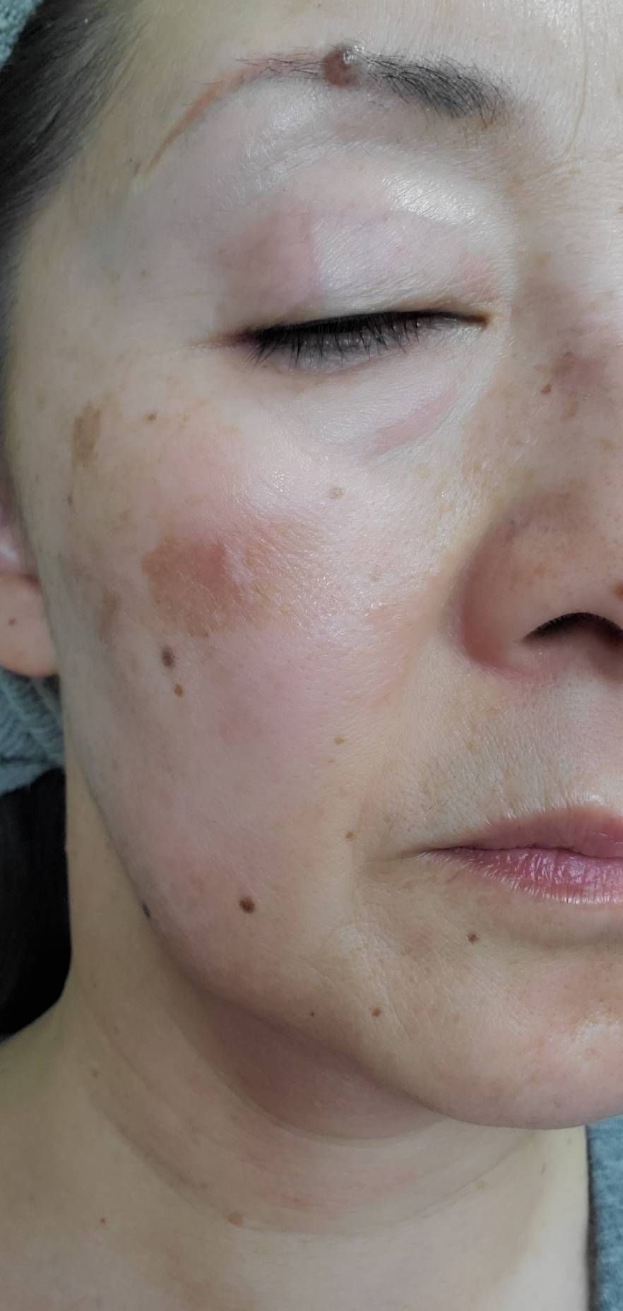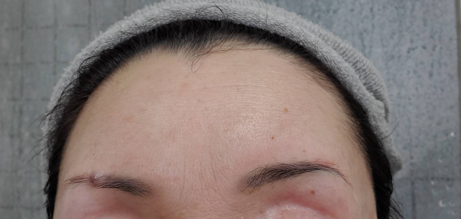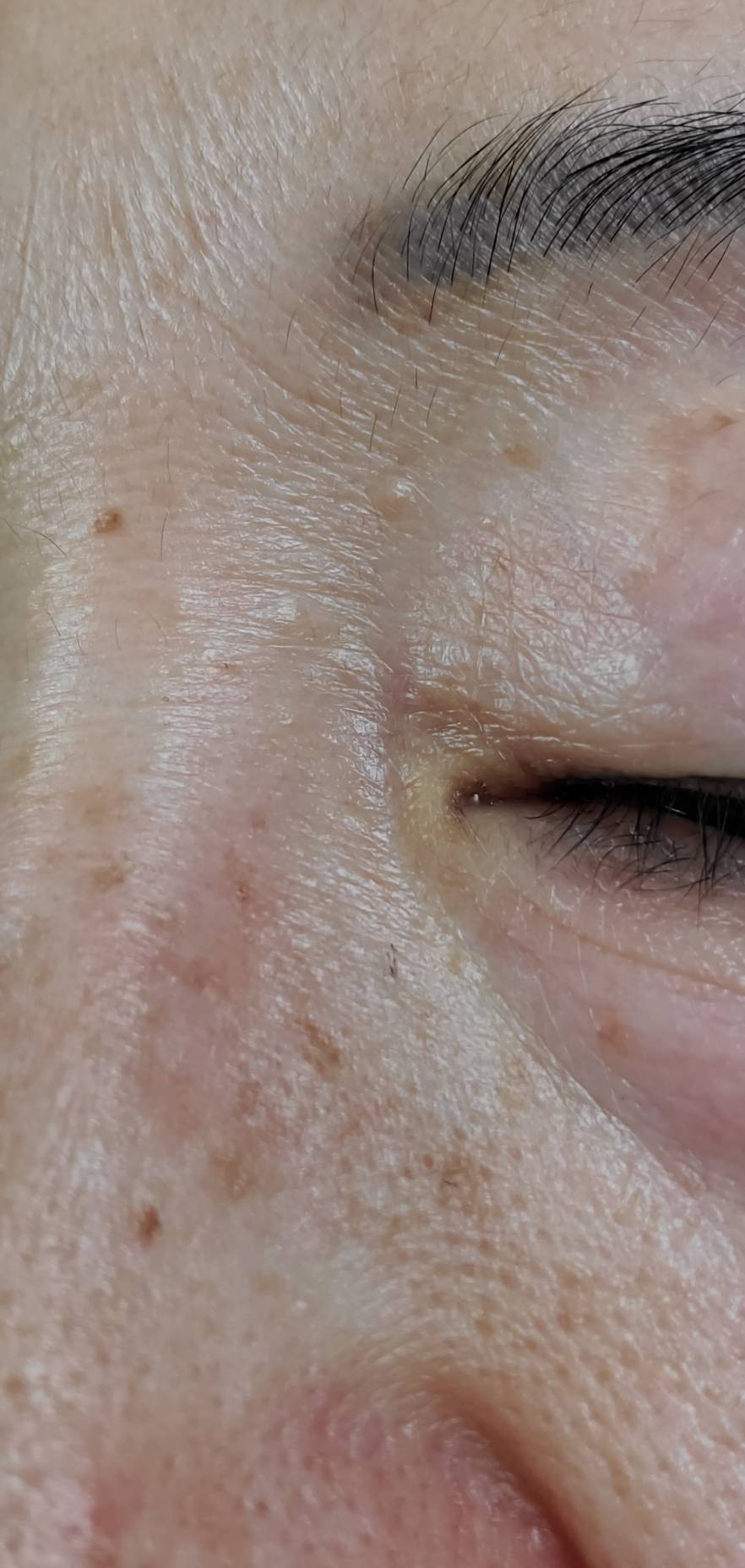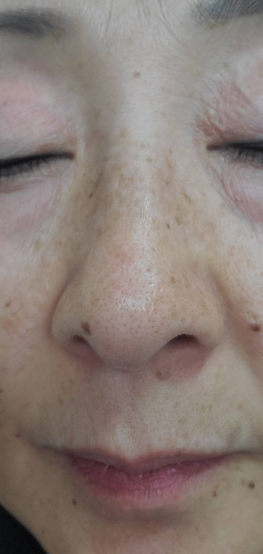 > 目の回りの赤みが少し引いたようですが、目を開けると上下の皮膚に引っ張られるようで、目が大きく開けにくく、細かいシワもたくさんですが、目尻に上下縦に出るシワが、とても目立ちます